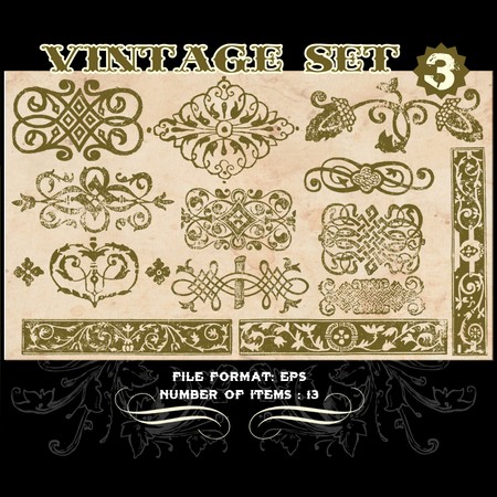 Vintage sets boffer you ornaments, flourishes and frames from old books. This art genre is specific to the rich, exotic imagery of the Renaissance and Baroque periods. Since it is really trendy nowadays to wear graphics that contain vintage elements, we thought these ones would come in handy for you as well.