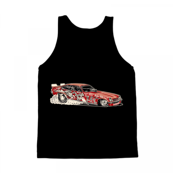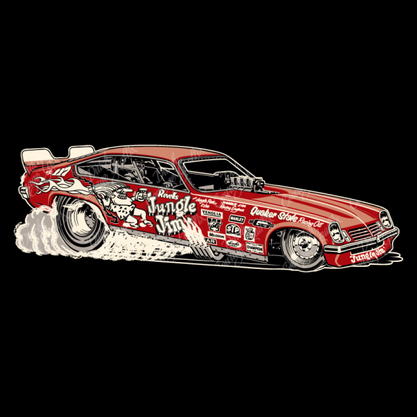 Vintage Vega funny car “Jungle Jim” - red livery - vector illustration