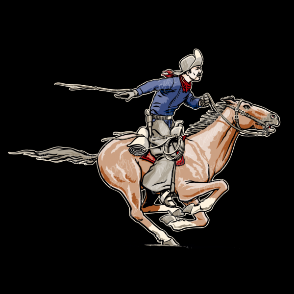 Vintage Western cowboy Pony Express horseback rider riding galloping mustang horse - vector illustration