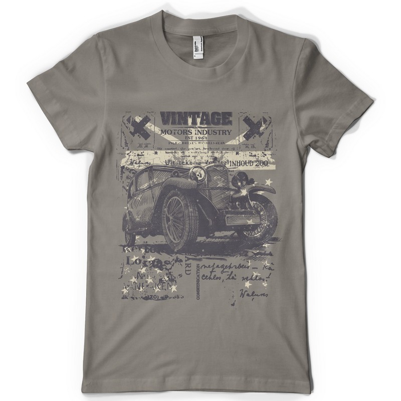 Vintage graphic design template in vector format, featuring detailed vintage car now available for Adobe Illustrator, Adobe Photoshop and Corel Draw and can be used for digital printing and screenprinting .