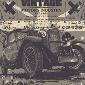 Vintage car on flag and text background