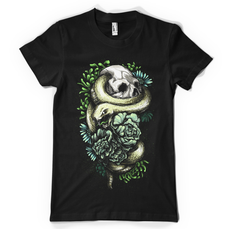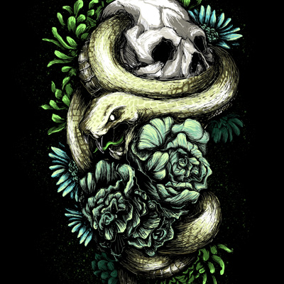 "Vivacity" is the the quality of being attractively lively and animated. This design consists of skull, roses, flowers, and a snake wrap around on the whole design. This design has a 300dpi and has a large size of 17" x 24". This is ready for printing.