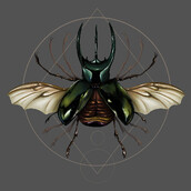 "Vitruvian Beetle" is a unique digital illustration of a beetle with a Vitruvian concept paired with geometric design to make it more eye-catching. File contains a PSD file with 17 x 24 in file size.