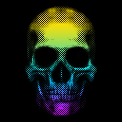 "Vivid Skull" is a unique design of a colorful skull with a unique modern halftone which is minimal in style but still having lots of elements in there because of the colors. File contains a PSD file with 17"x24" in standard size with 300 in dpi.