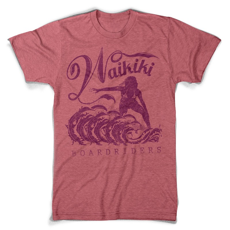 Waikiki board riders graphic design template in vector format, featuring detailed surf girl now available for Adobe Illustrator, Adobe Photoshop and Corel Draw and can be used for digital printing and screenprinting .