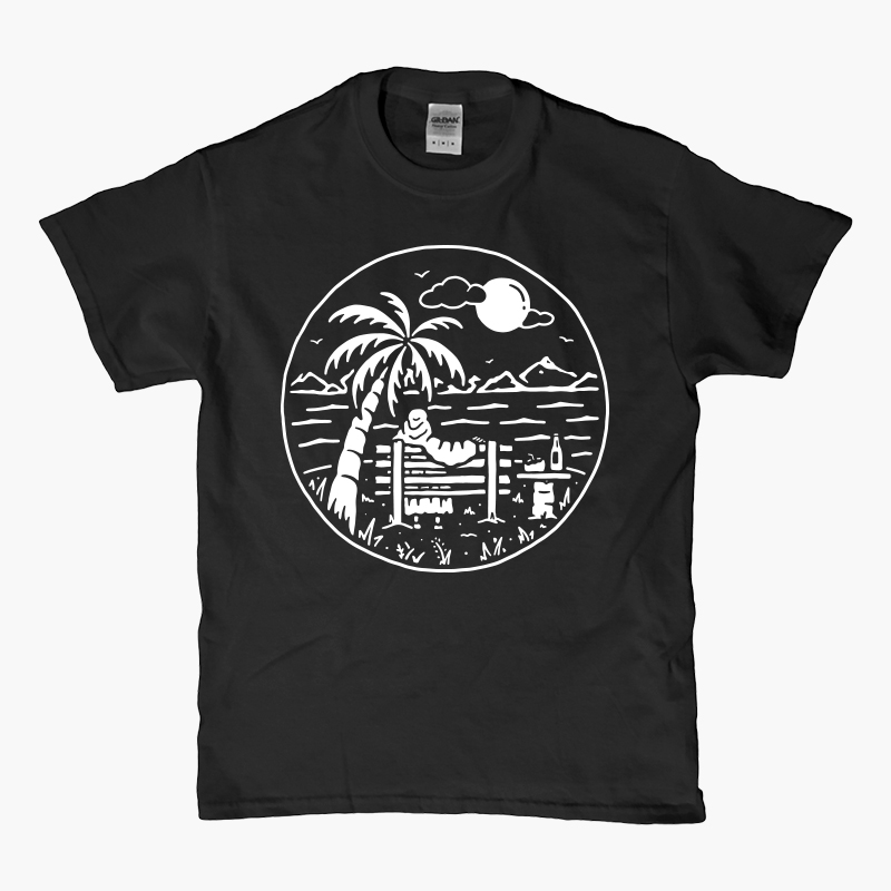 Wait For Sunset design template for t-shirt, stickers, or any other materials. Files include AI, EPS, PSD, CDR, PDF with artboard size 27x27 inch 300dpi. Ready for digital or screen printing.