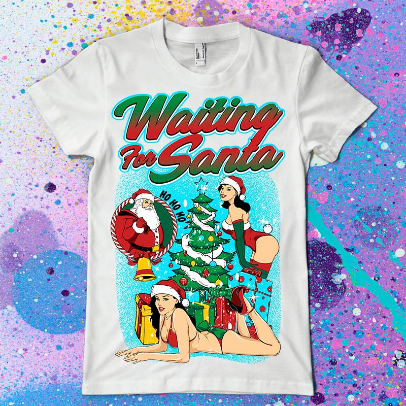 Waiting for Santa-shirt design features a sexy woman design detailed screen print now available for Adobe Illustrator, Adobe Photoshop and can be used for digital printing and screenprinting.