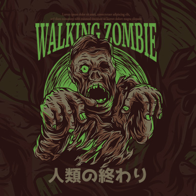 Walking Zombie it's a character design that was made in Adobe Illustrator. Based on vector file, easy to resize and edit. File features AI, EPS, and PNG all in zip, CMYK color mode and 4 color. Can be used for digital printing and screen printing.