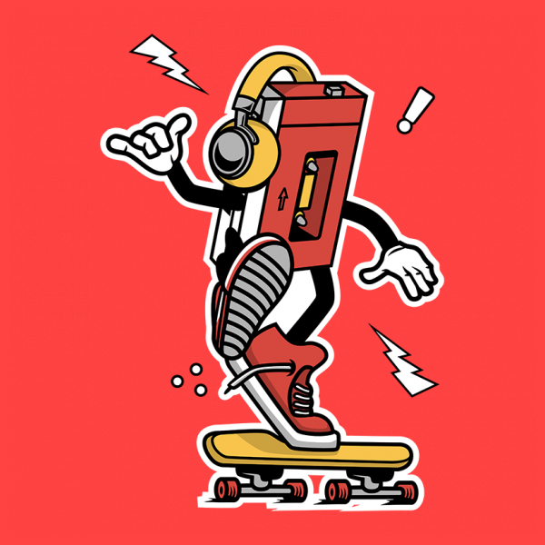 vector illustration of WALKMAN SKATEBOARD, this image is very cute for t-shirts and posters, this design is available in the form of files, CDR, AI, transparent backround PNG, JPEG, SVG, EPS, mookup not included