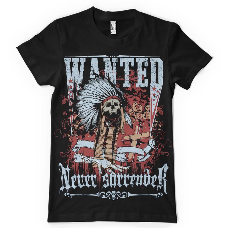 Wanted indian t-shirt print features a detailed design available for Adobe Illustrator, Adobe Photoshop and Corel Draw and can be used for digital printing and screenprinting . Ready to print or use in anything you want.