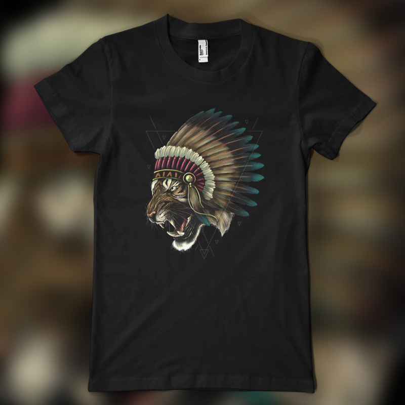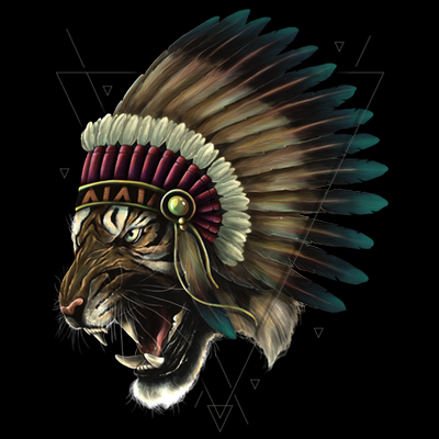 "Warlord" is a unique illustration of a tiger wearing a Native Indian headdress which represents superiority. This design is very unique and is created from scratch. It is accompanied by geometric lines to still keep it in modern era. File contains a PSD file with 17 x 24 in size with 300 in dpi.