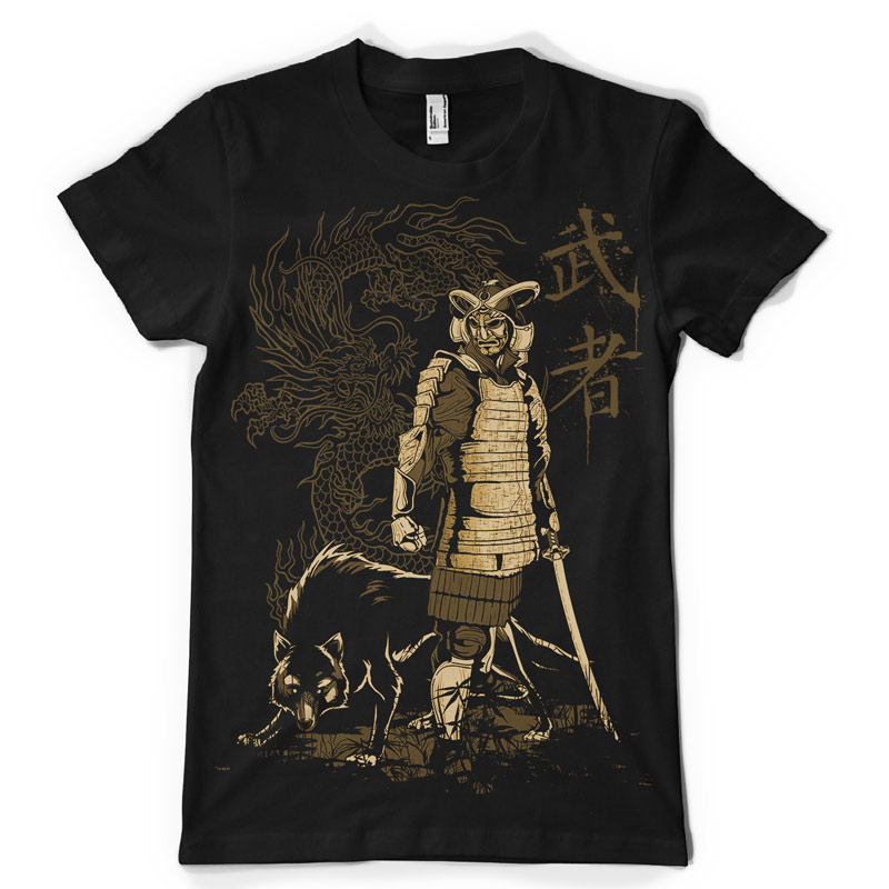 Warrior t-shirt design features a detailed screen print of warrior and his wolf now available for Adobe Illustrator, Adobe Photoshop and Corel Draw and can be used for digital printing and screenprinting .