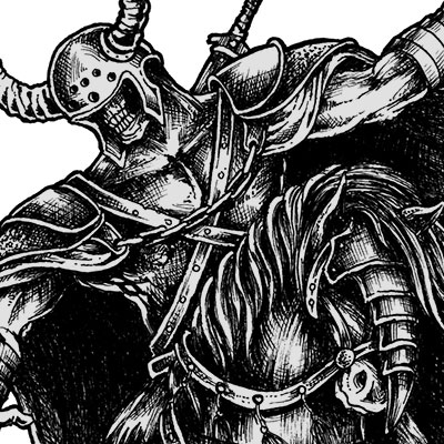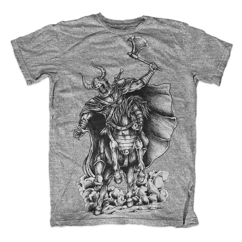 Illustration of warrior skull riding horse with axe and armor for battle. Ready to print on t-shirt.