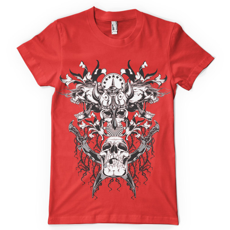 Warrior skull t-shirt print features a detailed design available for Adobe Illustrator, Adobe Photoshop and Corel Draw and can be used for digital printing and screenprinting . Ready to print or use in anything you want.