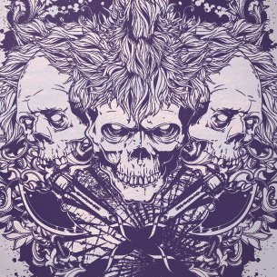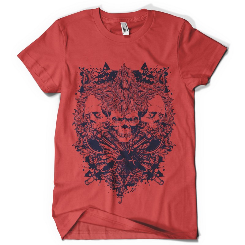 Warrior trinity digital design template in vector format, featuring detailed trio soldier skulls now available for Adobe Illustrator, Adobe Photoshop and Corel Draw and can be used for digital printing and screenprinting .
