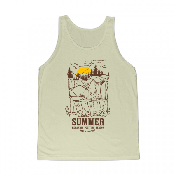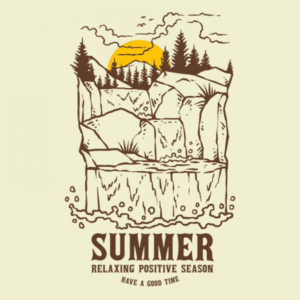 Vector illustration of mountain waterfall on the summer days. Ready to print on t-shirt.