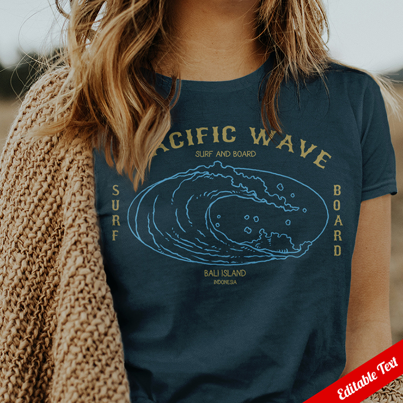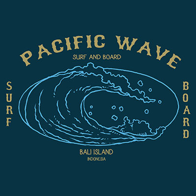 Vector illustration of wave with badges illustration style. Ready to print on t-shirt.