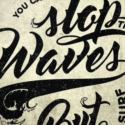 "Waves" T-shirt design featuring typography style quote, with distressed details. The files available are suitable for Adobe Illustrator, Adobe Photoshop and Corel Draw and can be used for digital printing and screenprinting.