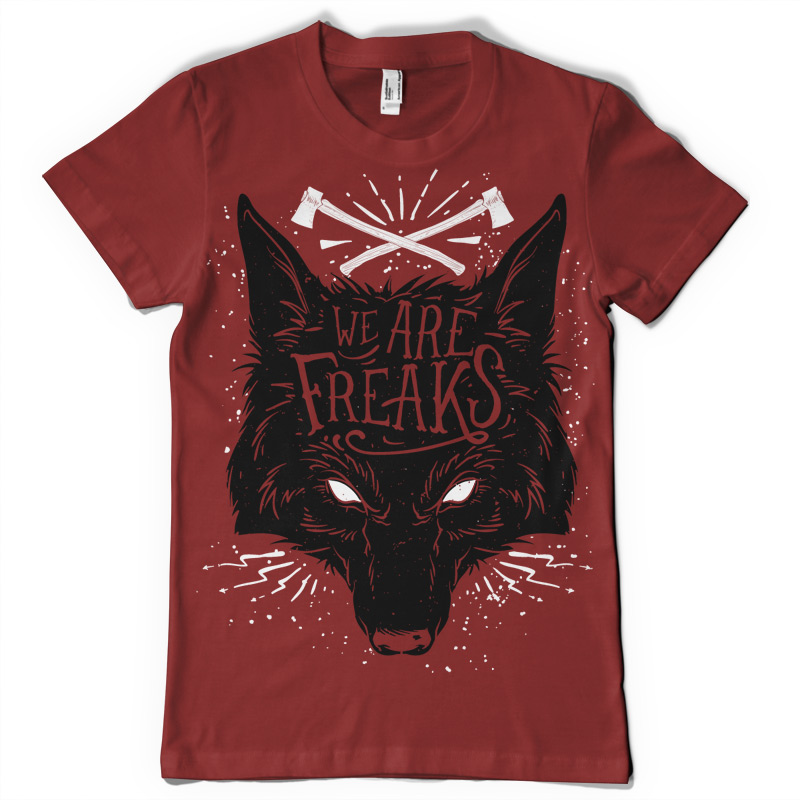 We are freaks t-shirt design in vector format.The artwork is featuring a wolf design .This is an Adobe Illustrator file, ready for print. Files included are Eps. The template can be used for digital printing and screenprinting.The file is well organised with every element on its own layer, including text , artwork and background.
