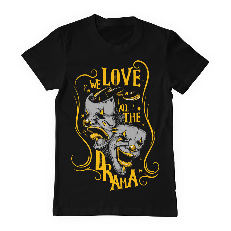 "We love all the drama" design is available in high quality files, such as Ai,EPS, PDF and PNG. Vector files are organized on separate layers and all elements are editable.The fonts used are 100% free for personal and commercial use(attached Read me file in the archive). Can be used for both digital (DTG) and screenprinting.