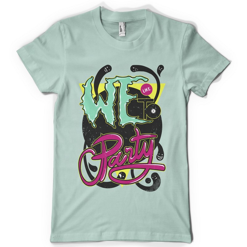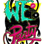 We love to Party graphic design template in vector format, featuring detailed fun music t-shirt now available for Adobe Illustrator, Adobe Photoshop and Corel Draw and can be used for digital printing and screenprinting .