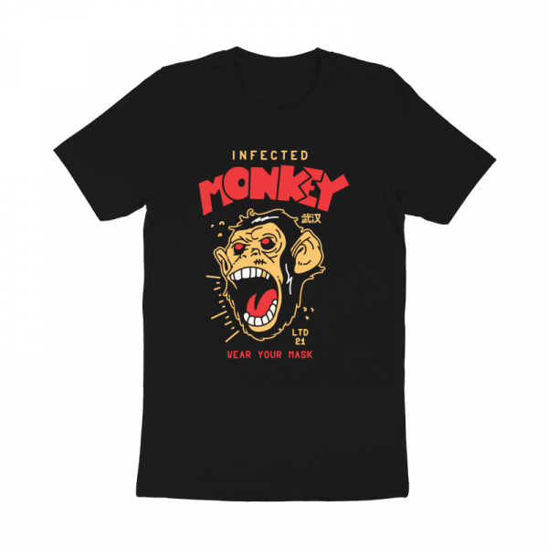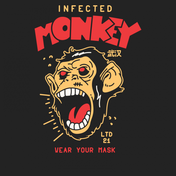 "Wear your mask " T-shirt design featuring a cartoon style monkey. The files available are suitable for Adobe Illustrator and Adobe Photoshop and can be used for digital printing and screen-printing.