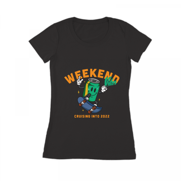 This design “ weekend vibes” is made in Adobe Ilustrator is ready for print.