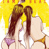 T Shirt design featuring a 2 sexy girls and taking pictures on the Miami beach.The files available for Adobe Illustrator. Files are available in eps (the CS version)