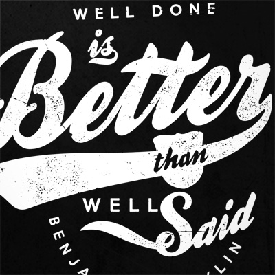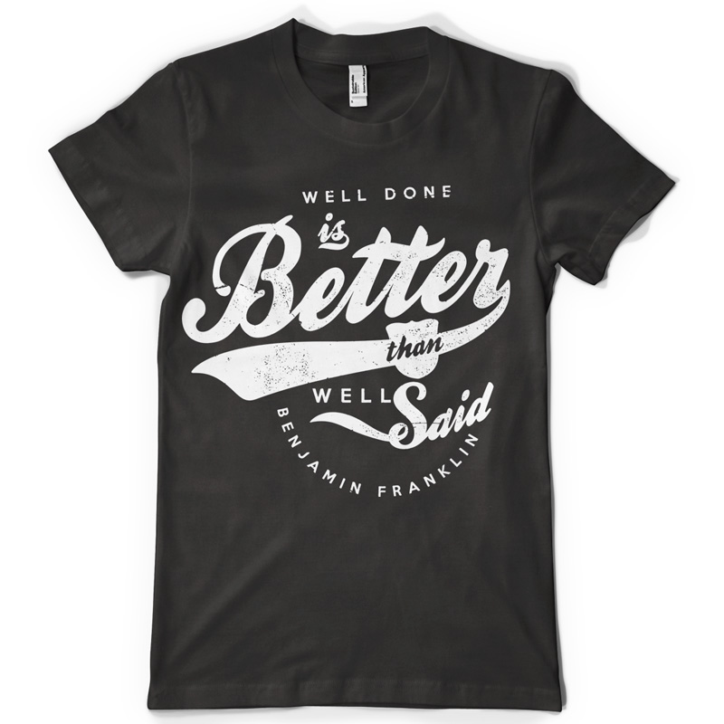 "Well Done" T-shirt design featuring typography style quote, with distressed details, featuring Benjamin Franklin quote. The files available are suitable for Adobe Illustrator, Adobe Photoshop and Corel Draw and can be used for digital printing and screenprinting.