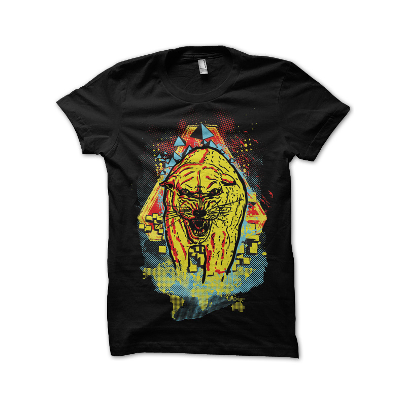 Wet Cat printed t-shirt features a detailed screen print of angry tiger now available in 3 color vector for Adobe Photoshop and can be used for digital printing and screenprinting .