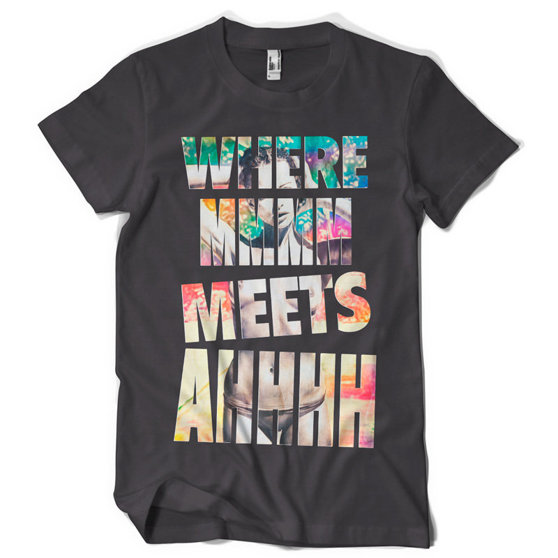 "where mmm meets ahhh" Artwork created in Adobe Photoshop. The file available for the client upon purchase and download are 1 layered file in TIFF (with transparency) format designed for DIRECT TO GARMENT printing. Also available upon request is 1 file in PDF format, layered, designed for the SCREEN PRINTING.