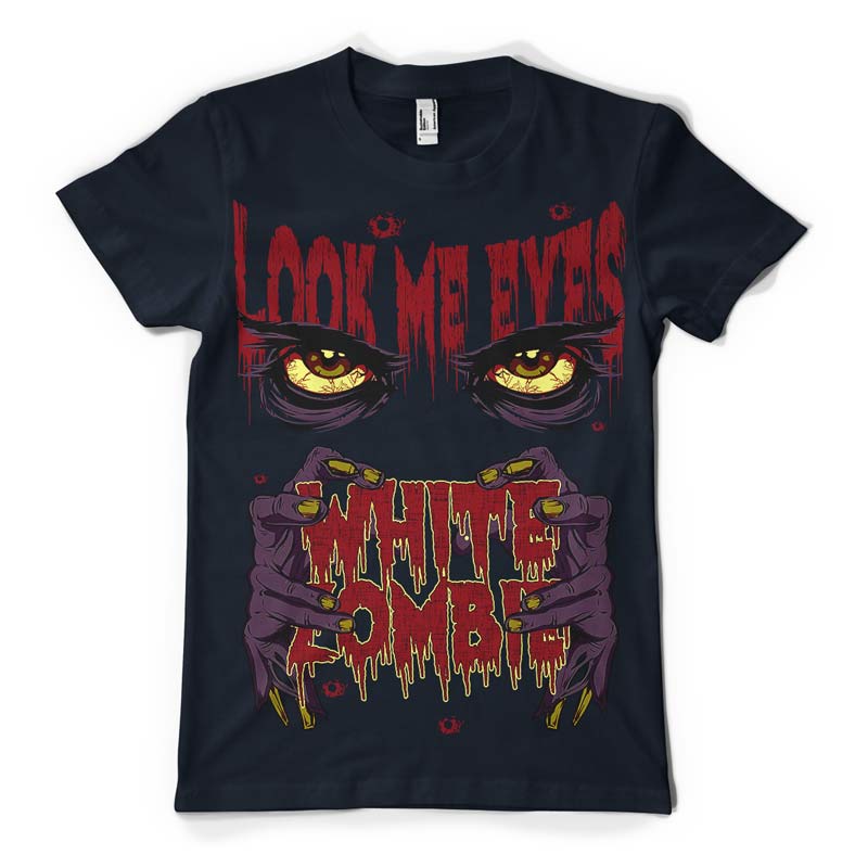 White Zombie t-shirt design features a detailed screen print of creepy look now available for Adobe Illustrator, Adobe Photoshop and Corel Draw and can be used for digital printing and screenprinting .