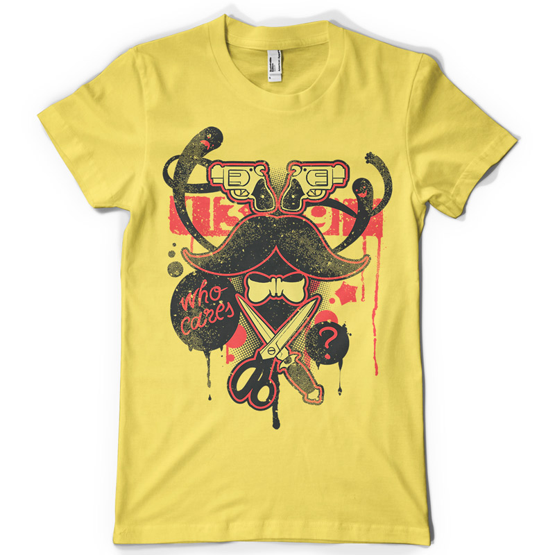 Who cares? digital design template in vector format, featuring detailed killer moustache now available for Adobe Illustrator, Adobe Photoshop and Corel Draw and can be used for digital printing and screenprinting .