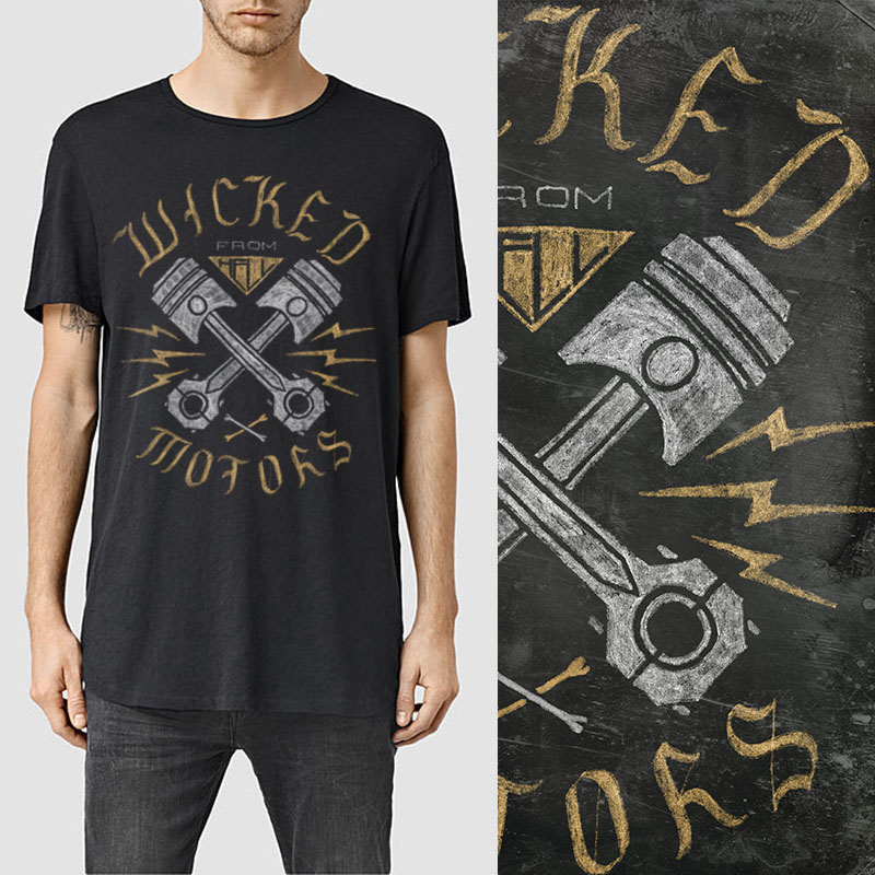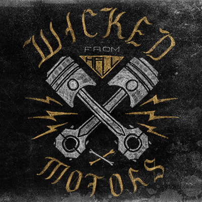 * Wicked Motors * is part of my Vintage Series designs, a collection of handmade classic imagery, scanned at the highest resolution. Being handdraw gives it an unique texture. It contains a PSD file, colors are separated in layers, ready to print. It can also be autotraced in Illustrator with optimal results.