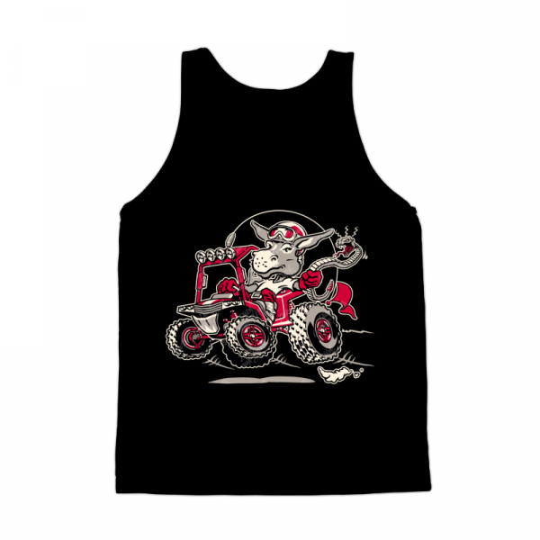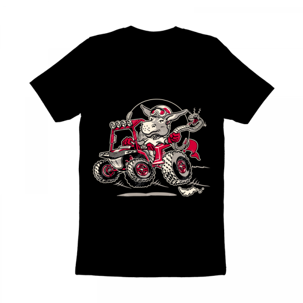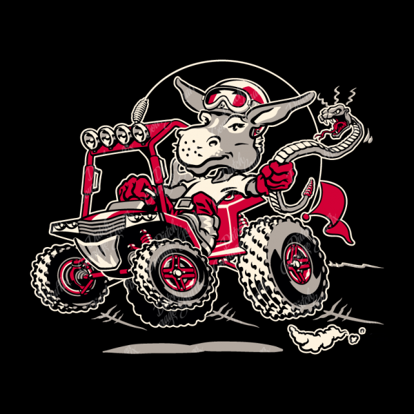 Wild burro donkey mule riding UTV utility terrain vehicle while swinging a rattle snake - cartoon - vector illustration