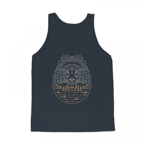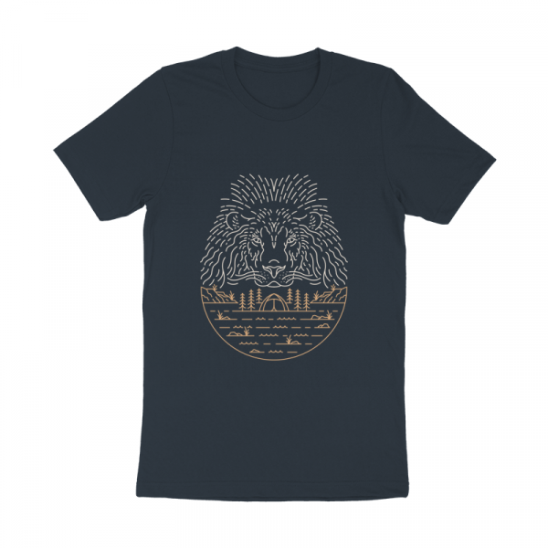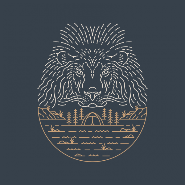 Wild Camping 1 is a monoline illustration that is suitable for apparel or merchandise about nature, outdoors, trip, travel, adventure, wild, camping, holiday, vacation, camper, wanderlust, wildlife, animals, predator, lion.