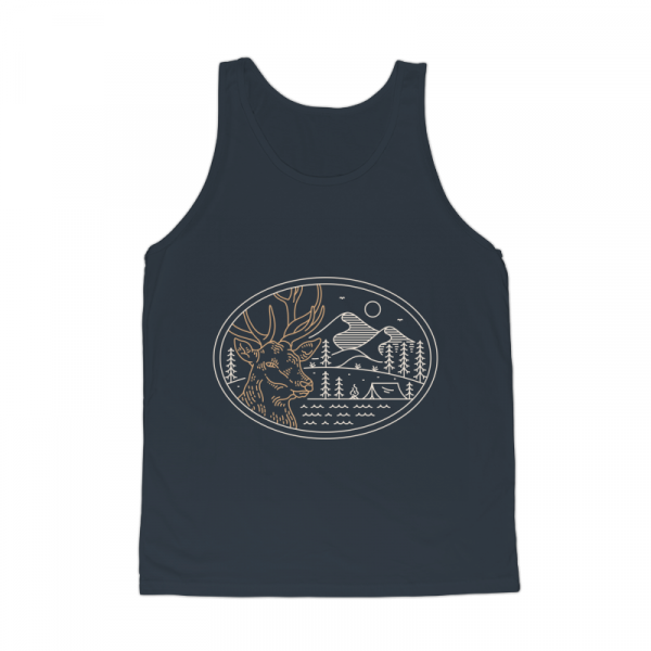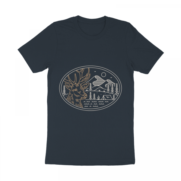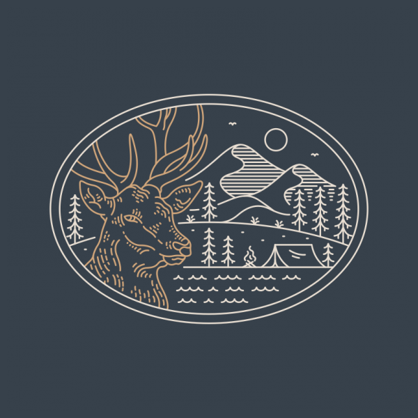 Wild Camping 2 is a monoline illustration that is suitable for apparel or merchandise about nature, outdoors, trip, travel, adventure, wild, camping, holiday, vacation, camper, wanderlust, wildlife, animals, predator, deer.