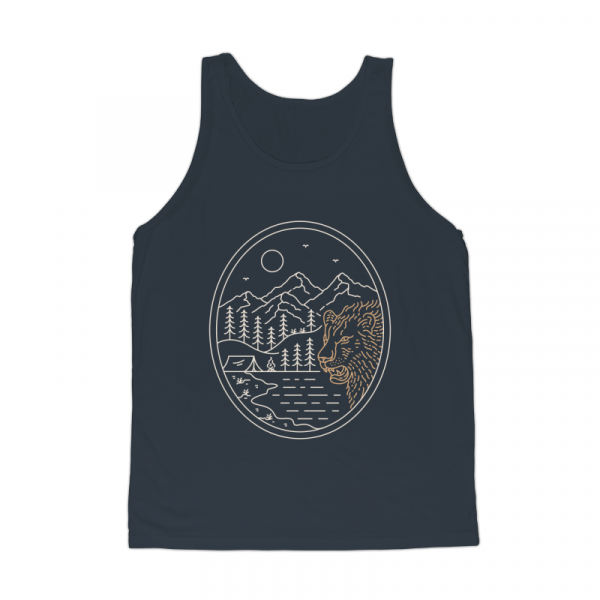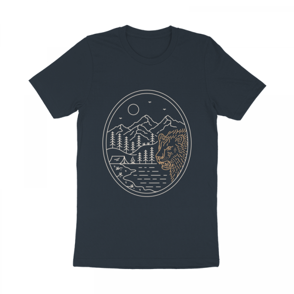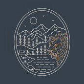 Wild Camping 3 is a monoline illustration that is suitable for apparel or merchandise about nature, outdoors, trip, travel, adventure, wild, camping, holiday, vacation, camper, wanderlust, wildlife, animals, predator, tiger.