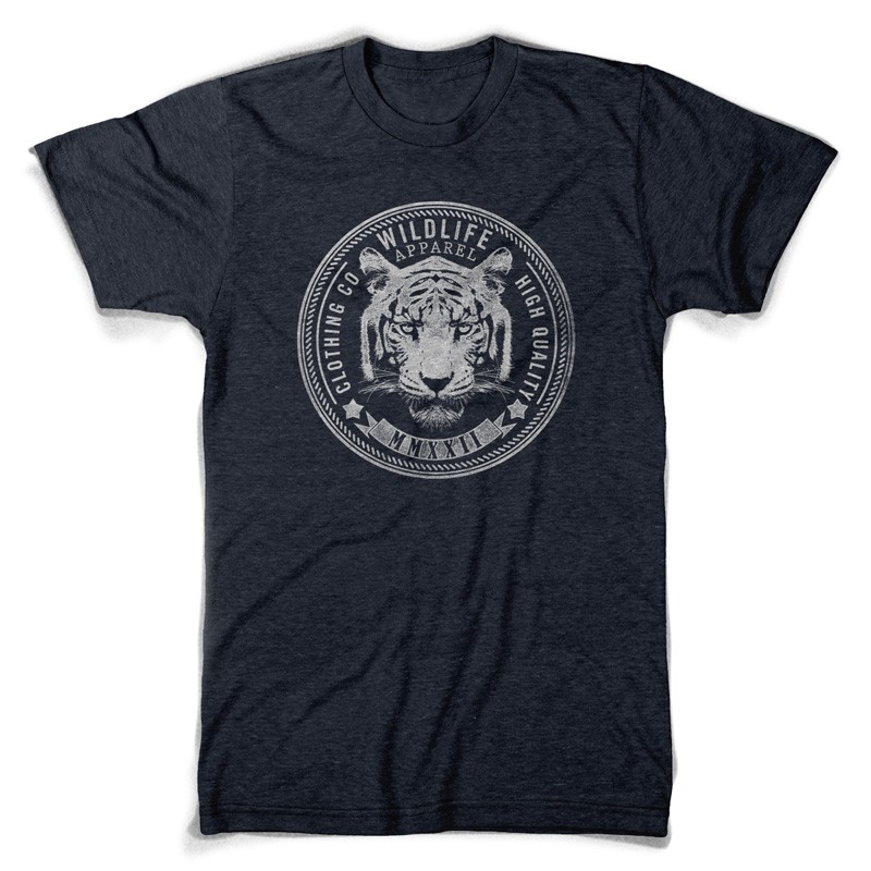 Wild life apparel digital design template in vector format, featuring detailed wild tiger now available for Adobe Illustrator, Adobe Photoshop and Corel Draw and can be used for digital printing and screenprinting .