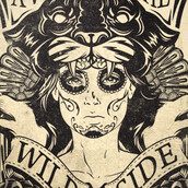 Wild mask graphic design template in vector format, featuring detailed sugar girl with a tiger hat now available for Adobe Illustrator, Adobe Photoshop and Corel Draw and can be used for digital printing and screenprinting .