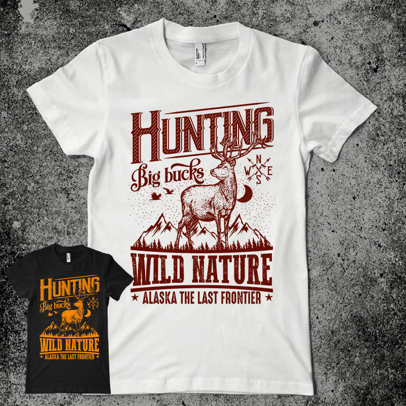 Wild Nature features a hunting design with detailes. Screen print now available for Adobe Photoshop and illustrator can be used for digital printing and screenprintin