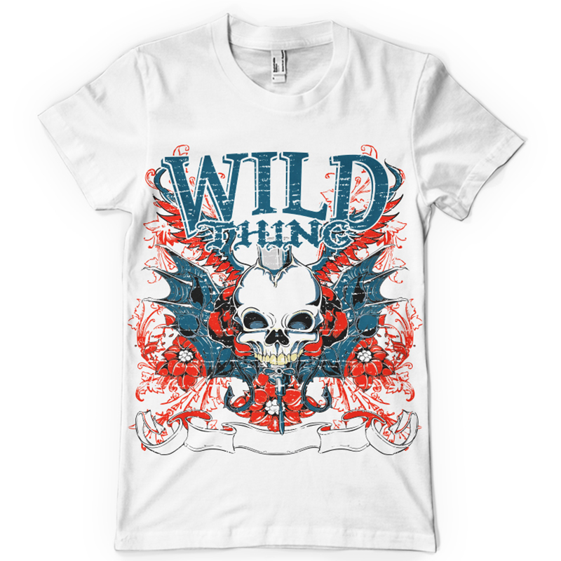 Wild thing printed t-shirt features a detailed screen print of creepy bat skull is now available in EPS format file and can be used for digital printing and screenprinting . Ready to print or use in anything you want.