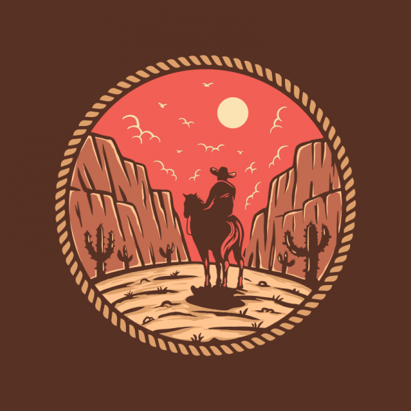 Wild West Adventure is a vintage illustration that is suitable for t-shirts, jackets, or merchandise with the theme of nature, desert, cactus, sahara, succulent, canyon, outdoors, adventure, cowboy, horse, animal, wildlife, wild, west, trip.