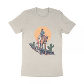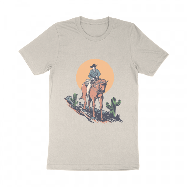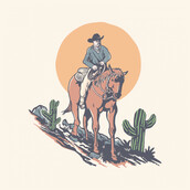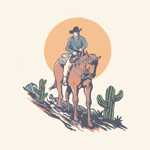 Wild West Cowboy is a vintage illustration that is suitable for t-shirts, jackets, or merchandise with the theme of nature, desert, cactus, sahara, succulent, canyon, outdoors, adventure, cowboy, horse, animal, sheriff, wildlife, wild, west.