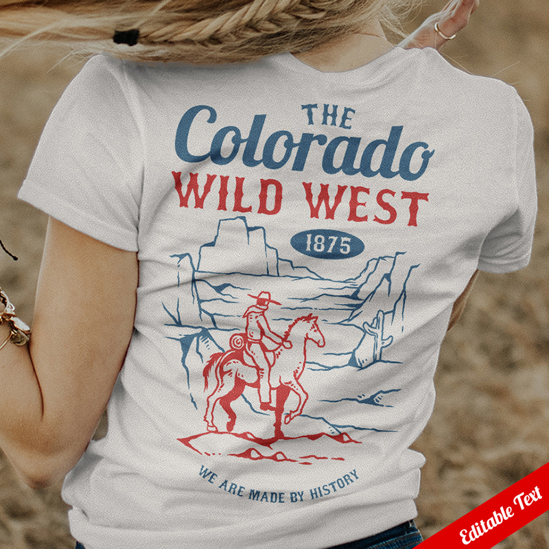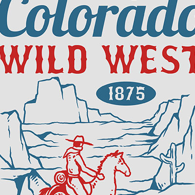 Vector illustration of cowboy wild west riding a horse on the mountain. Ready to print on t-shirt.
