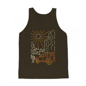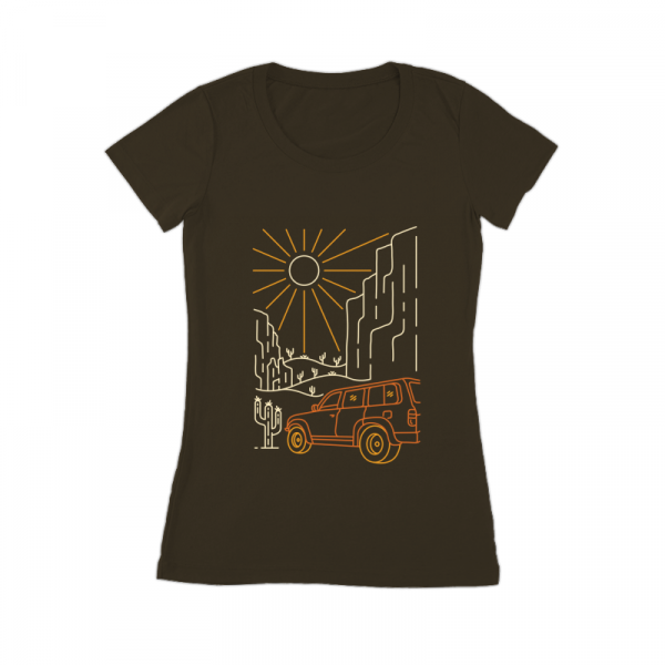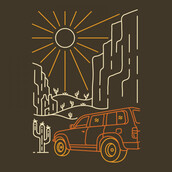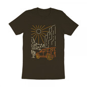 Wild West Journey 1 is a vintage handdrawn illustration that is suitable for apparel or merchandise about nature, outdoors, adventure, journey, desert, wild west, western, cactus, succulent, cowboy, arizona, yeehaw, canyon, national park, van.