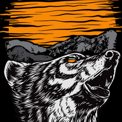 Handrawn Wolf. Suitable for your community, clothing line store, or event. Easy to replace the text and colors. ZIP Feautures contain 1 EPS 10 1 Ai 1 PNG Size 16'x24' CMYK Color mode Layered