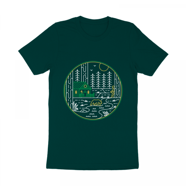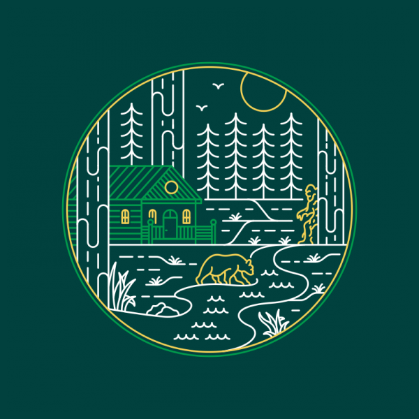 Wildcome Home 1 is a monoline illustration that is suitable for apparel or merchandise about nature, outdoors, adventure, cabin, camping, animals, bear, bigfoot, yeti, forest, wild, wildlife, national park, backpacker, redwood,