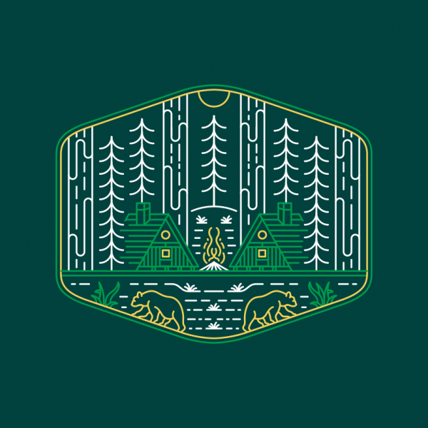 Wildcome Home 3 is a monoline illustration that is suitable for apparel or merchandise about nature, outdoors, adventure, cabin, camping, animals, bear, bigfoot, yeti, forest, wild, wildlife, national park, backpacker, redwood,