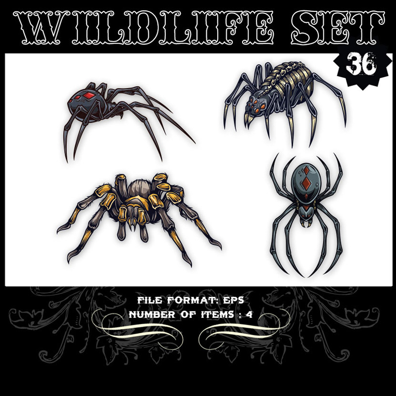 Wildlife set 36 - Spiders, vector set including 4 spiders. All of these vectors are incredibly detailed and more than suitable for what your design needs. The file will be available EPS formats